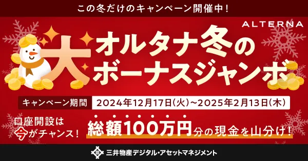 現在、オルタナでは投資キャンペーンを実施しています。(2026年3月時点)