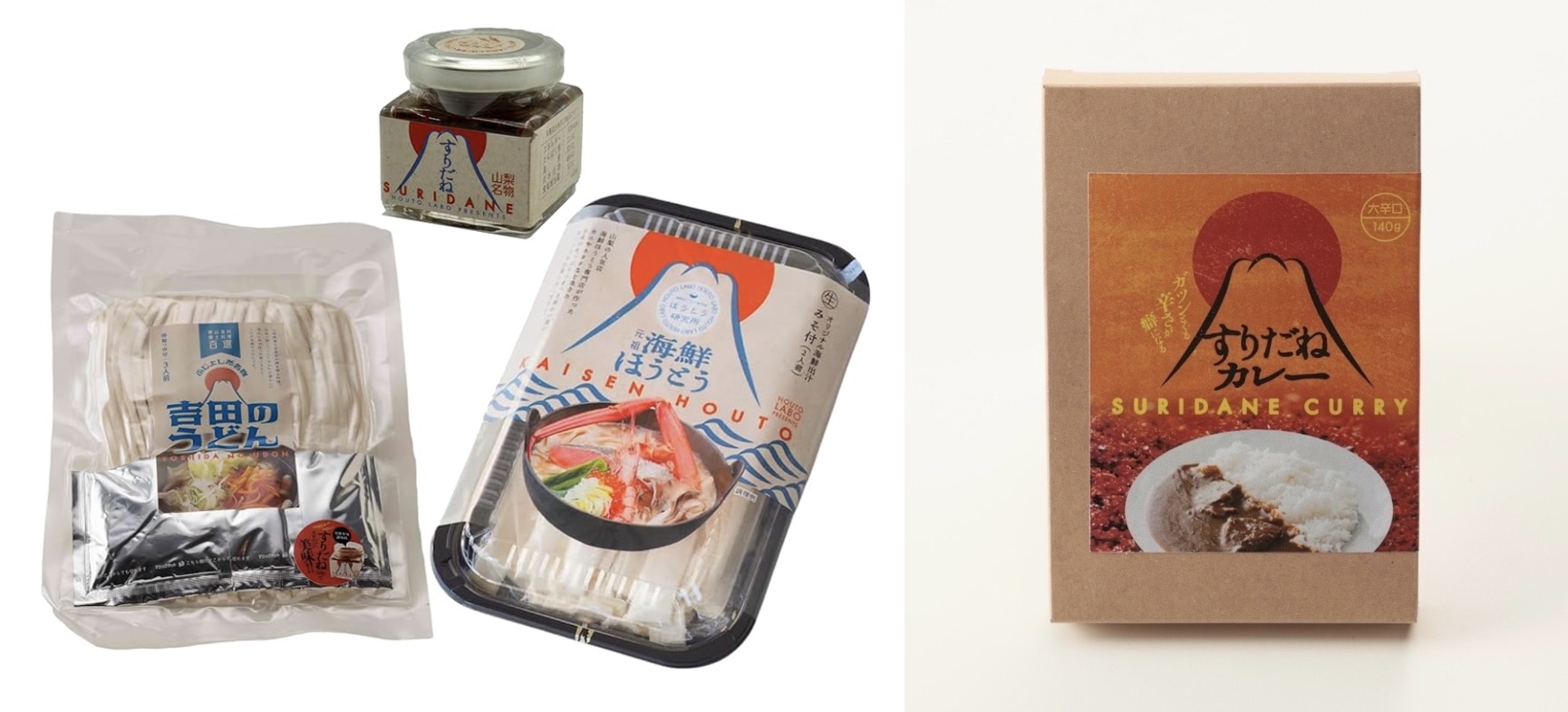 山梨 伝統味付き七味 「すりだね」と「海鮮ほうとう」「吉田のうどん3人前(つゆ付き)」セット + すりだねカレー