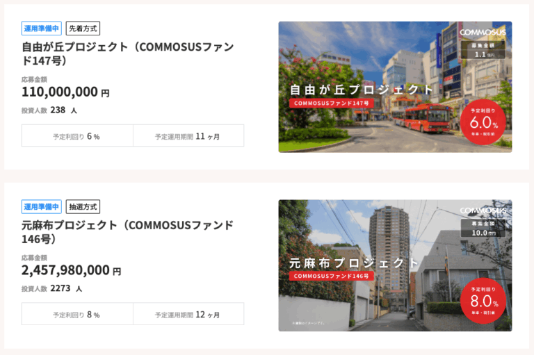 「COMMOSUS」では、投資のプロが厳選した、利回りが高くて不動産が担保になっている案件が多数あります。