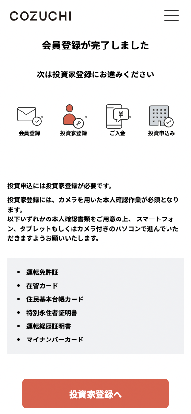 COZUCHI(コヅチ)の始め方・投資家登録のステップを写真付きで紹介