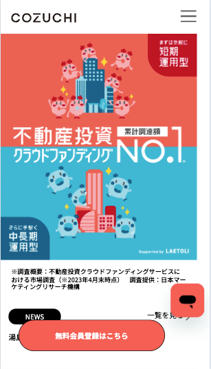 上記のような疑問を持っている人に向けて、実際にCOZUCHIに投資をしている(53万円分)筆者が登録方法・始め方について解説していきます。