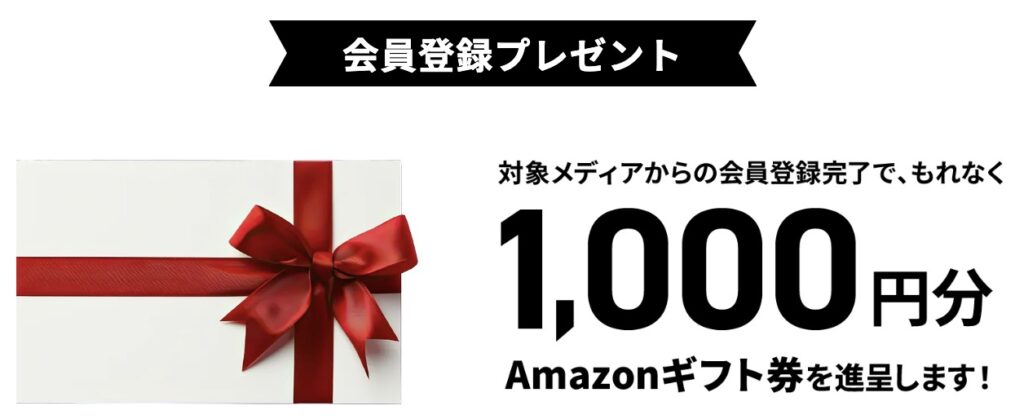 また通常の公式サイトから会員登録しても、1,000円分のアマギフはもらえないので注意しましょう。