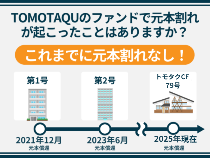 2025年9月時点では、トモタクで募集されたファンドで元本割れが起こったことはありません。
