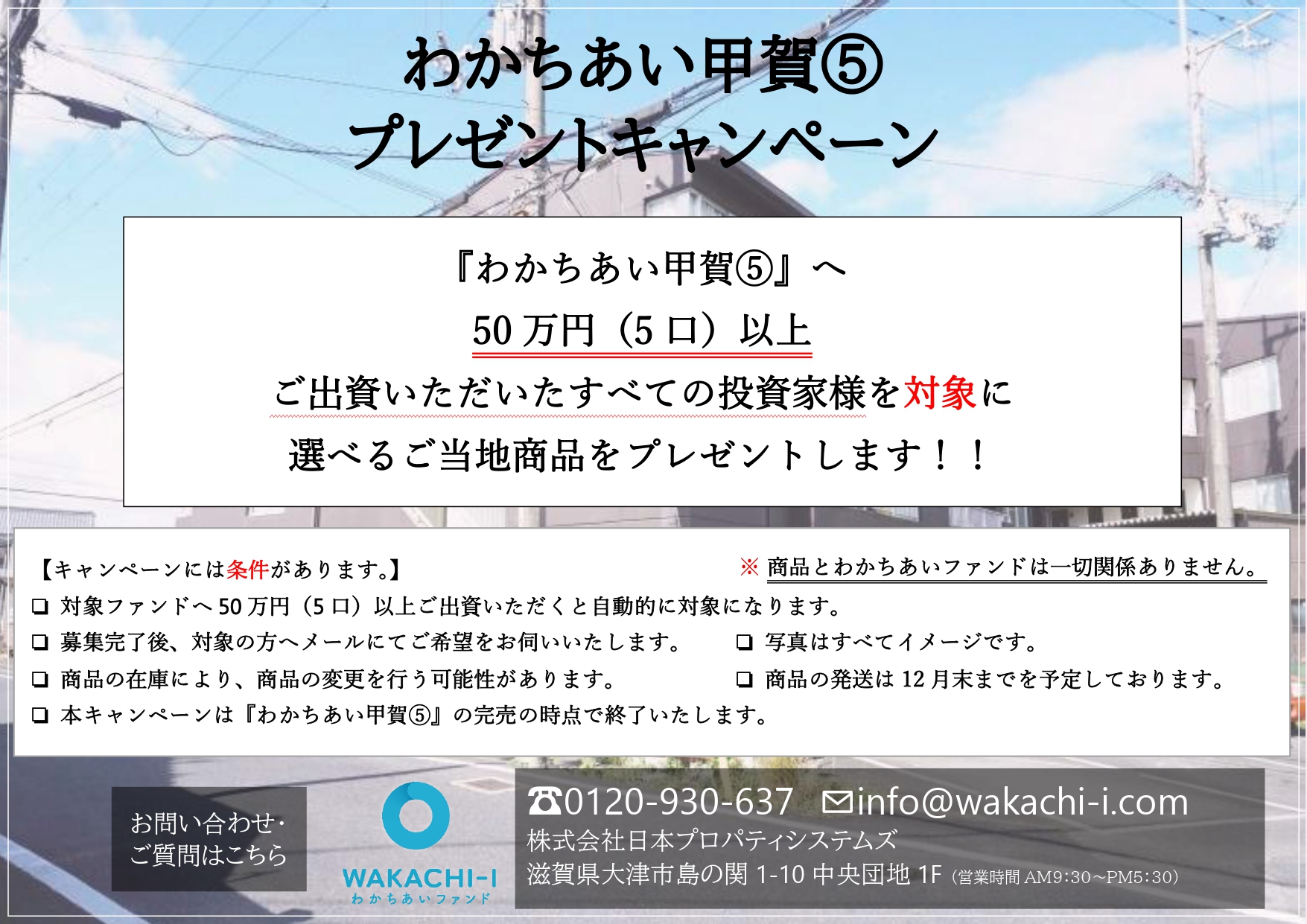 「わかちあい甲賀⑤」に50万円以上出資することです。