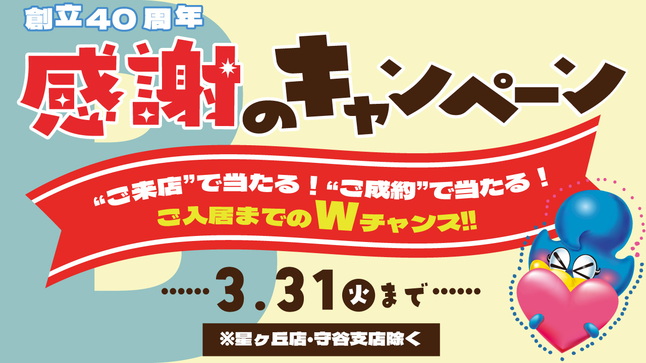 - “ご来店”で当たる!“ご成約”で当たる!ご入居までのWチャンス!!